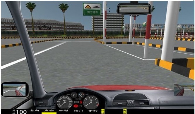 軟件主界面 :啟動畫面后, 界面下方同時顯示:油門、剎車、轉向、離合器 深淺進度均有顯示 。 視景 120 度全新廣角寬頻駕駛模擬,界面顯示 各項指示燈、文字提示框、檔位位置 、訓練成績,后視鏡(左、右、中)后視鏡可調節、訓練線路圖均有顯示。