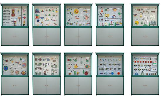 本《機械原理與機械設計》陳列柜是根據天津大學機械原理與機械設計教研室集體編寫的國家級十五規劃教材而設計的一套電化多媒體教學設備,內容包含 機械 原理、機械設計、課程設計三大部分。陳列柜共分十個柜和一個電腦控制臺,進行多媒體聲控同步解說演示。由 PC 機電腦控制順序或任選運行每個柜模型動作,同時電腦播放圖形同步模型動作。并且每個柜的內容在電腦里用 PPT 格式 編寫,內容包含機械原理、機械設計、課程設計等教程數據,采用 Microsoft PowerPoint 演示文稿進行幻燈片放映,方便學員課外進行學習和研究。 本陳列柜上下柜整體采用彩色塑鋼結構,堅固耐用,外形美觀。